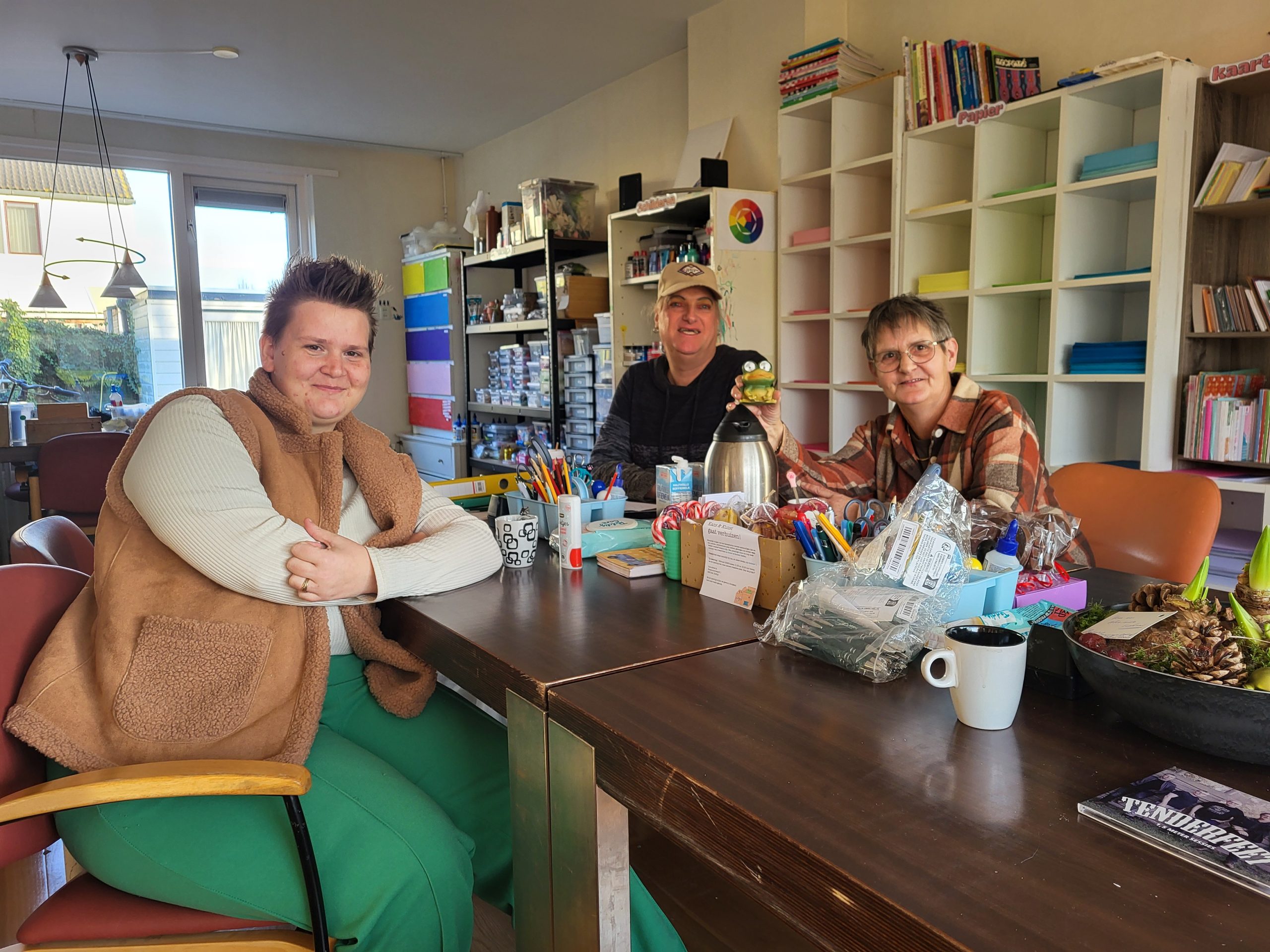 De medewerkers zijn druk bezig met de inrichting van de nieuwe creatieve broedplaats. Veel kasten en meubilair konden worden overgenomen van Verpleeghuis Vliethoven. ‘We zijn heel blij met die spullen en ook met deze nieuwe plek. Het is hier licht, ruim en warm. Bovendien is het atelier hier veel toegankelijker dan de flatwoning’, vertelt aanjager Kim van der Laan enthousiast. ‘We gaan hier in principe op dezelfde wijze door, maar breiden het workshopaanbod uit met onder meer stopmotion en animatie. Dat is de fototechniek die ook gebruikt wordt in tekenfilms.’